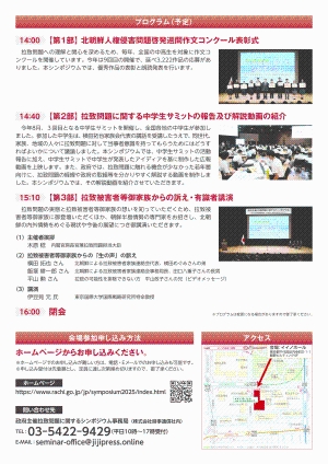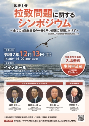 「政府主催 拉致問題に関するシンポジウム~全ての拉致被害者の一日も早い帰国の実現に向けて~」のチラシのダウンロードはこちら【PDF】